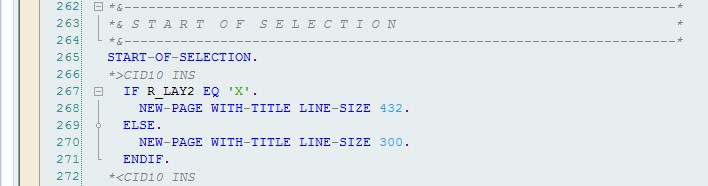 คราวนี้ เลยเปลี่ยนการกำหนด line size ใหม่ ให้มากำหนด ที่ใต้ START-OF-SELECTION. แทน ดังภาพข้างล่างนี้